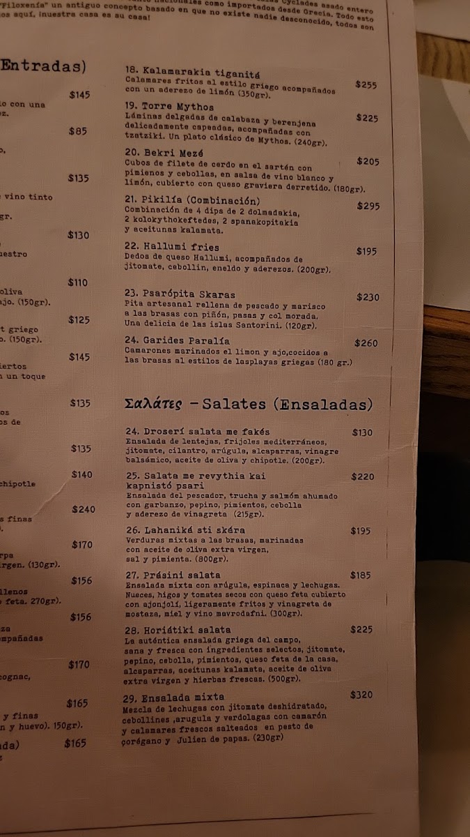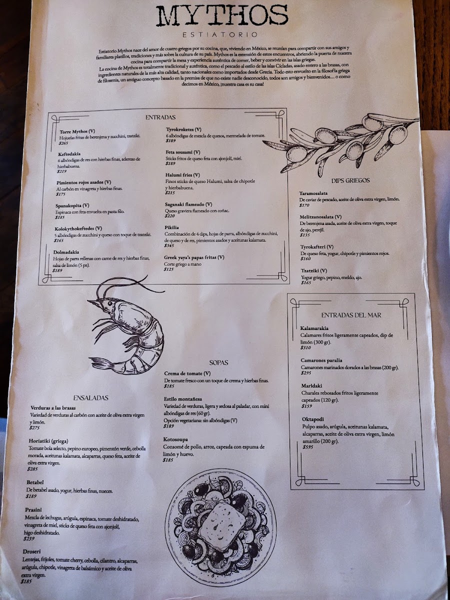 Welcome to Mythos Roma-Cibeles, a delightful gem located in the heart of Roma Nte., Ciudad de México. Here, guests can indulge in an authentic Greek dining experience, where every dish tells a story of culinary tradition. The menu boasts enticing entradas like the Kolokytokeftedes, flavorful vegetarian meatballs made with zucchini and feta, served with a refreshing tzatziki dip. Don't miss the iconic Horiatiki Salata, a refreshing Greek salad bursting with fresh ingredients, including ripe tomatoes, cucumbers, and olives.